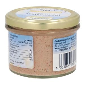 41% Schweinefleisch*, 19% Schweineleber*, Schweinespeck*, Schweinekopffleisch*, Schweineschwarten*, Zwiebeln*, Meersalz, Gewürze* (Pfeffer*,